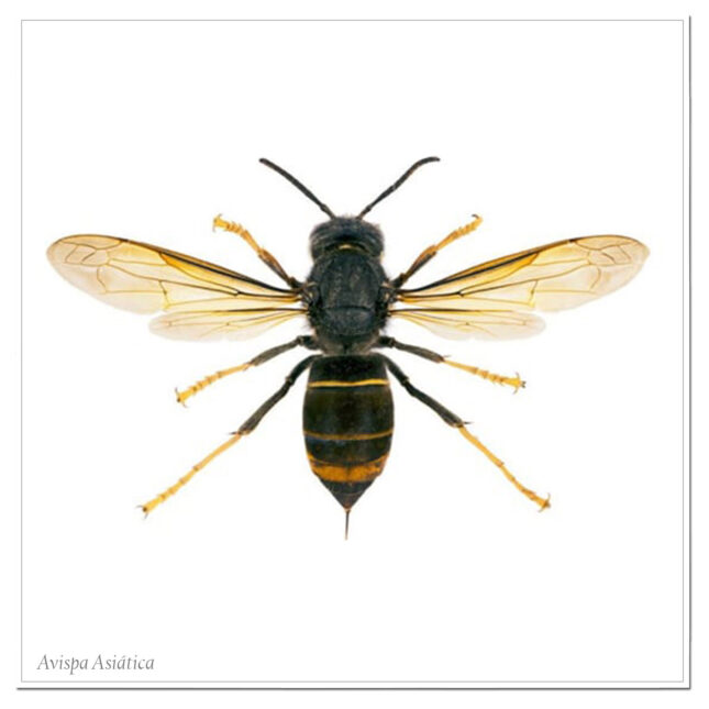 Sin duda, una de las especies más peligrosas de esta clase. De gran tamaño, tiene como color predominante el negro, con detalles amarillos. Las patas son de color amarillo de la mitad al fin. Esta especie se ha establecido en nuestro país y crece cada año. No solo es perjudicial para el ser humano, sino para otras avispas y abejas. Las abejas están en su lista principal de alimentación, correspondiendo a casi un 80%. La picadura de éste insecto puede ser mortal, en caso de acceder a zona de mucosa o dependiendo de la reacción de la propia persona. Debemos tener en cuenta que la retirada de nidos de avispa asiática debe realizarse con la máxima urgencia.
