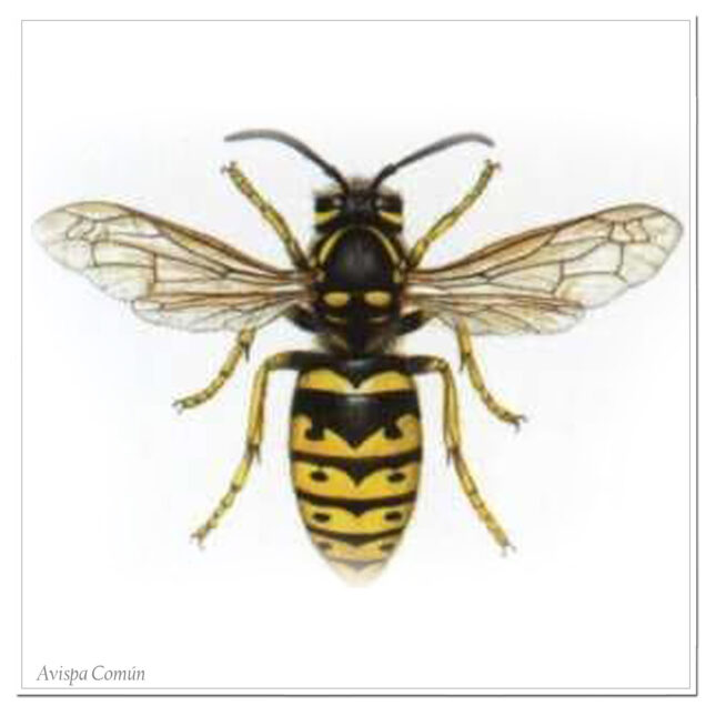 La avispa común es la que visualizamos con más frecuencia, sobre todo en los meses más calurosos, como primavera y verano, creando colmenas de todo tipo de tamaños y en áreas muy diversas. Este insecto de tamaño medio y de color amarillo intenso casi en su totalidad. En el entorno urbano, es habitual que nos encontremos nidos de avispas en cajones de persiana de las viviendas, huecos de barandillados, falsos techos, etc buscando siempre un refugio perfecto.